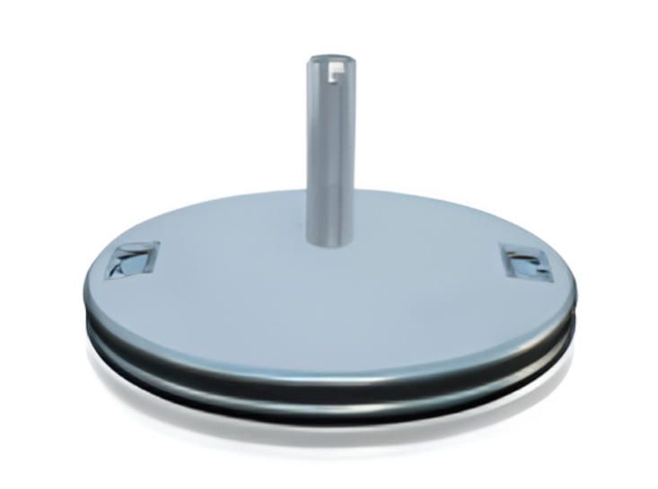 Aus naturfarbenem Beton mit Klappgriffen und Metallschutzreif für Schirmmasten bis Ø 60 mm.